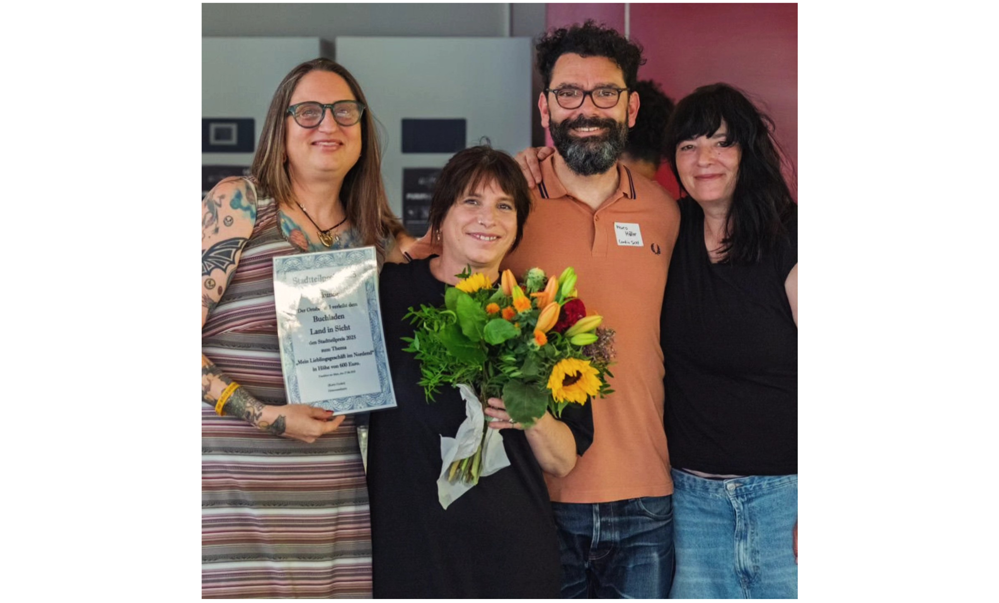 Der Buchladen Land in Sicht ist mit dem Stadtteilpreis 2025 im Frankfurter Nordend ausgezeichnet worden. Der Preis wird seit 20 Jahren vom Ortsbeirat 3 an herausragende Projekte, Unternehmungen und Personen im Viertel vergeben.