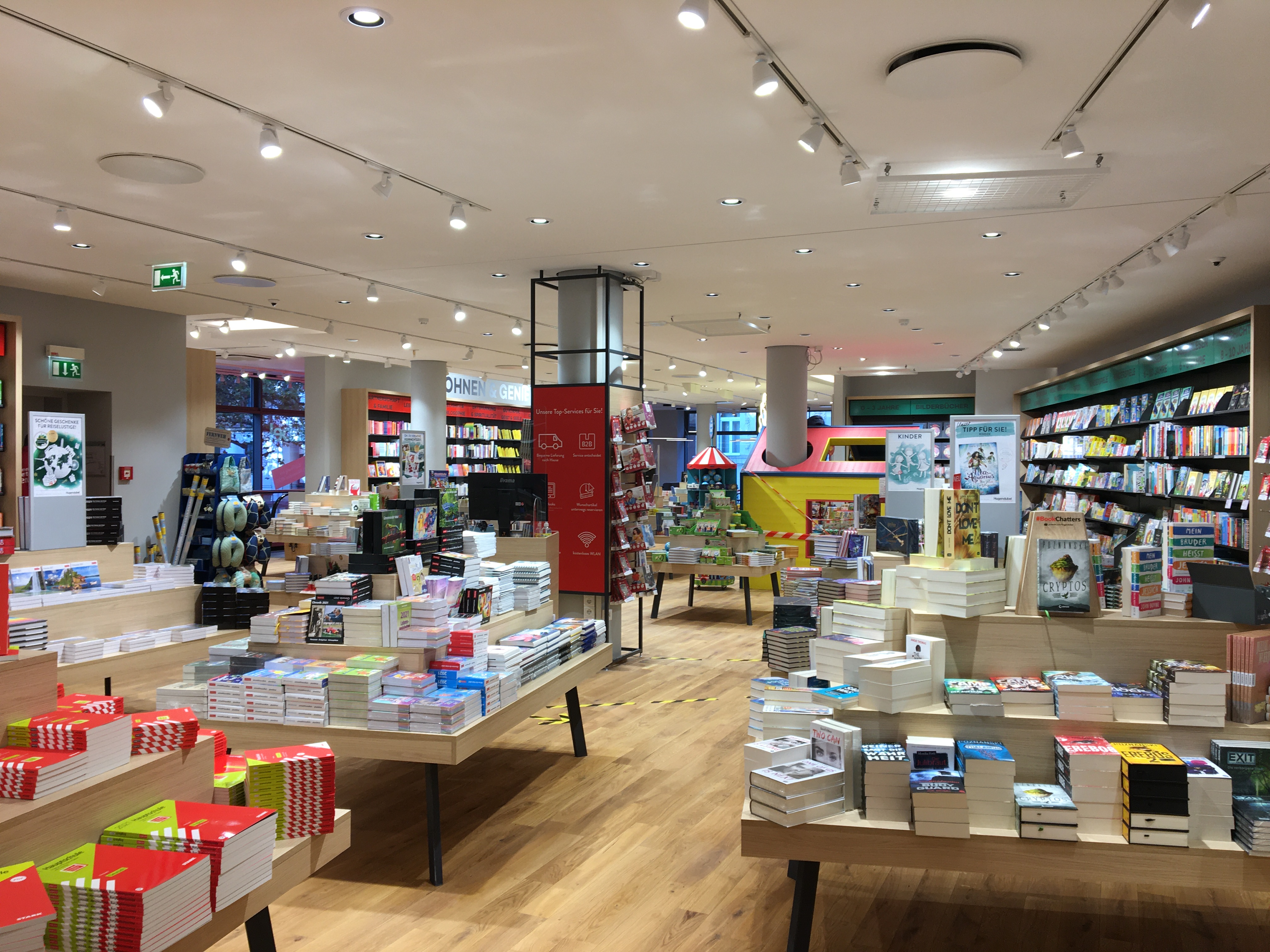 Die Buchhandlung wird unter der Leitung von Felicitas Nachtigall einen „besonderen Fokus auf die beste Auswahl eines breiten literarischen Vollsortiments, individuelle Berartung durch die Hugendubel Buchhändler vor Ort sowie auf eine angenehme Lese-Atmosphäre legen“, teilt das Unternehmen mit. Das eingeplante Café muss corona-bedingt zunächst noch geschlossen bleiben.