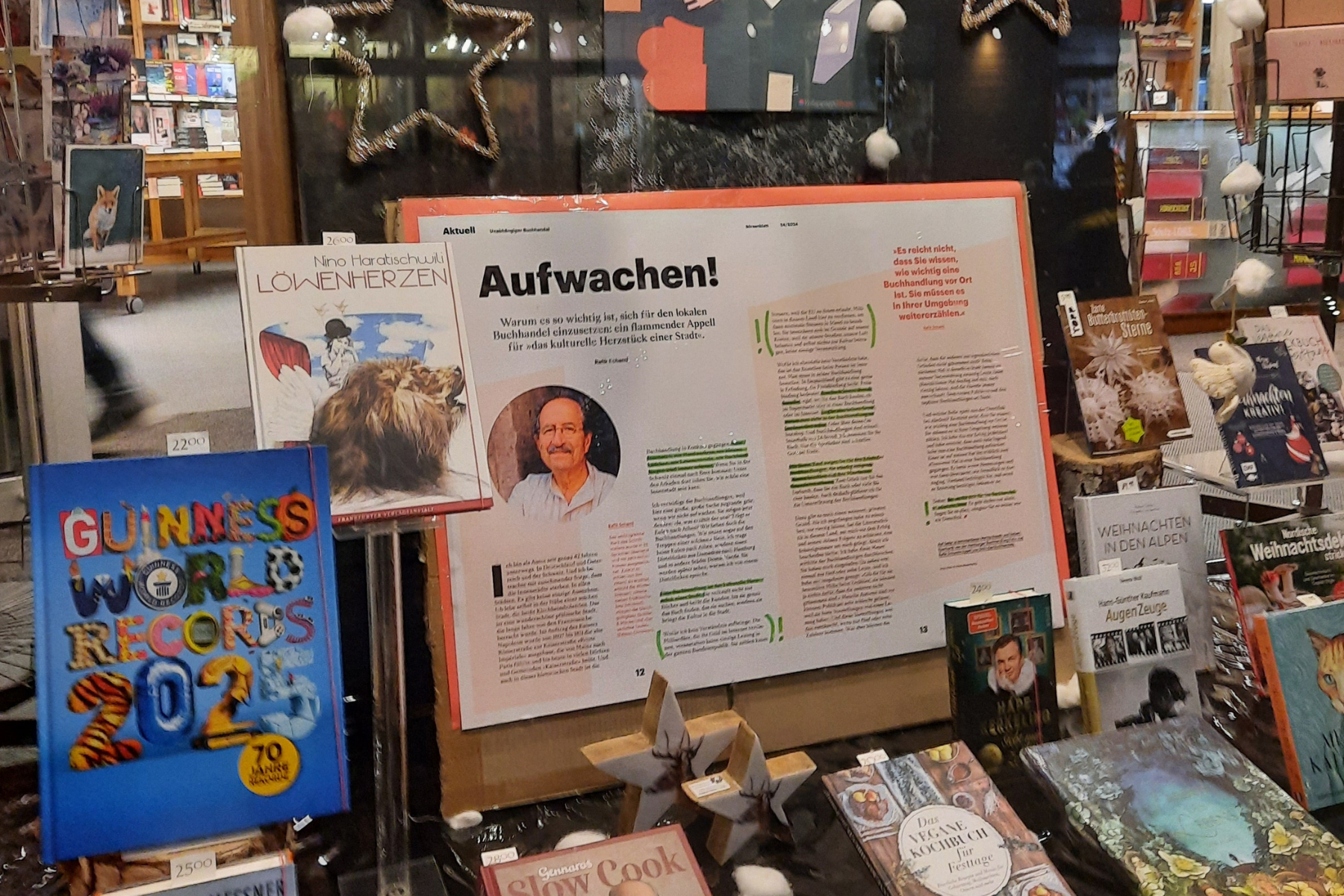 Anlass genug, Schamis Appell in das Schaufenster der Buchhandlung zu hängen. Wichtige Textstellen hat Richter mit einem Textmarker hervorgehoben.