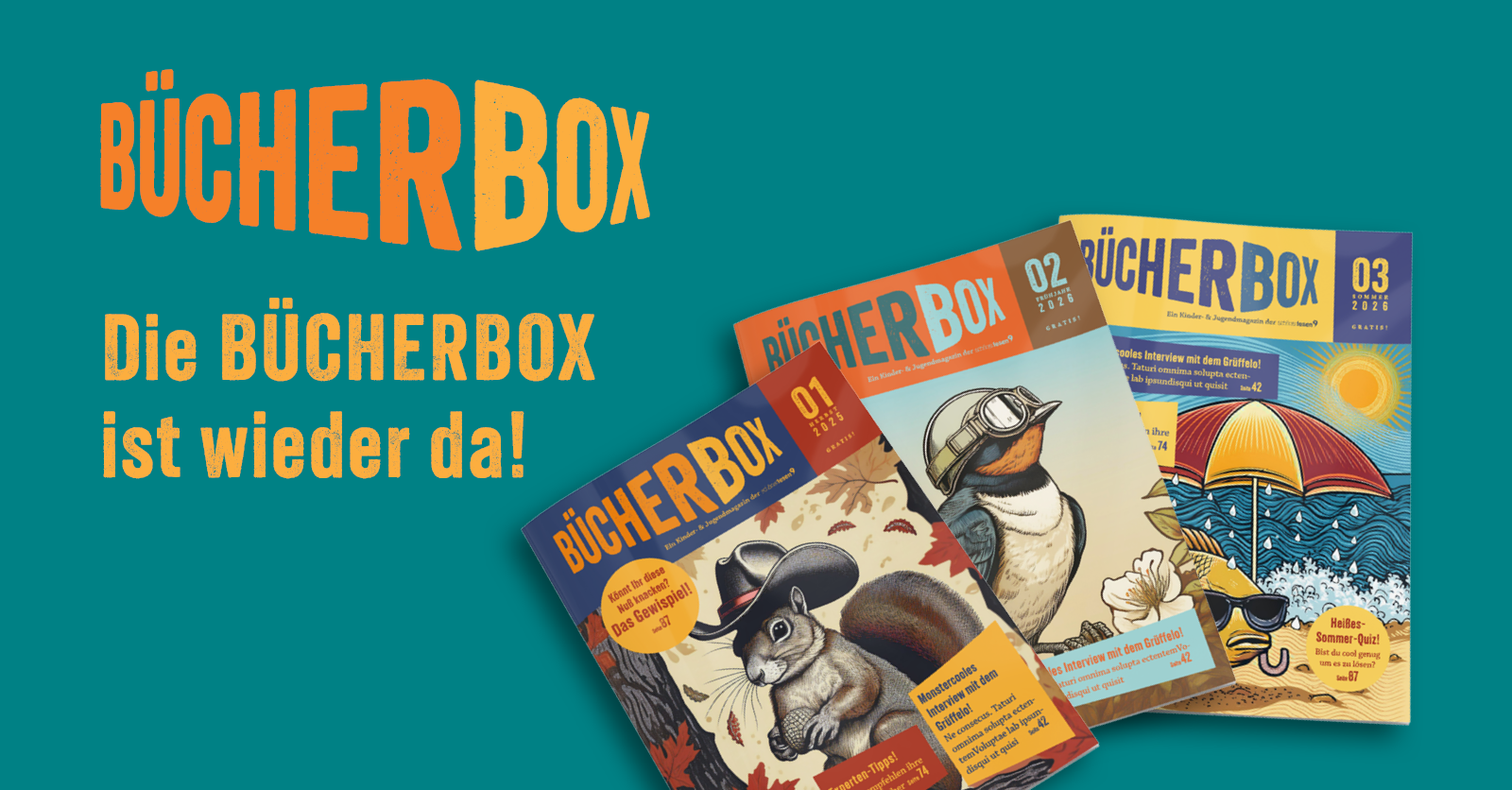 Die BücherBox, das seit 2010 etablierte Kundenmagazin der avj, erscheint künftig unter dem neuen Titel schönerlesen BücherBox – in Zusammenarbeit mit dem Branchenmagazin BuchMarkt sowie der eBuch. Sie richtet sich gezielt an junge Leser:innen und präsentiert rund 100 aktuelle Kinder- und Jugendbuchtitel verschiedener Verlage.