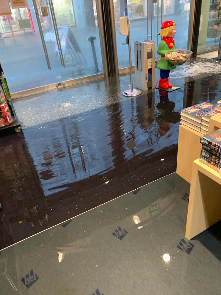 Starkregen flutet Buchhandlung Graff