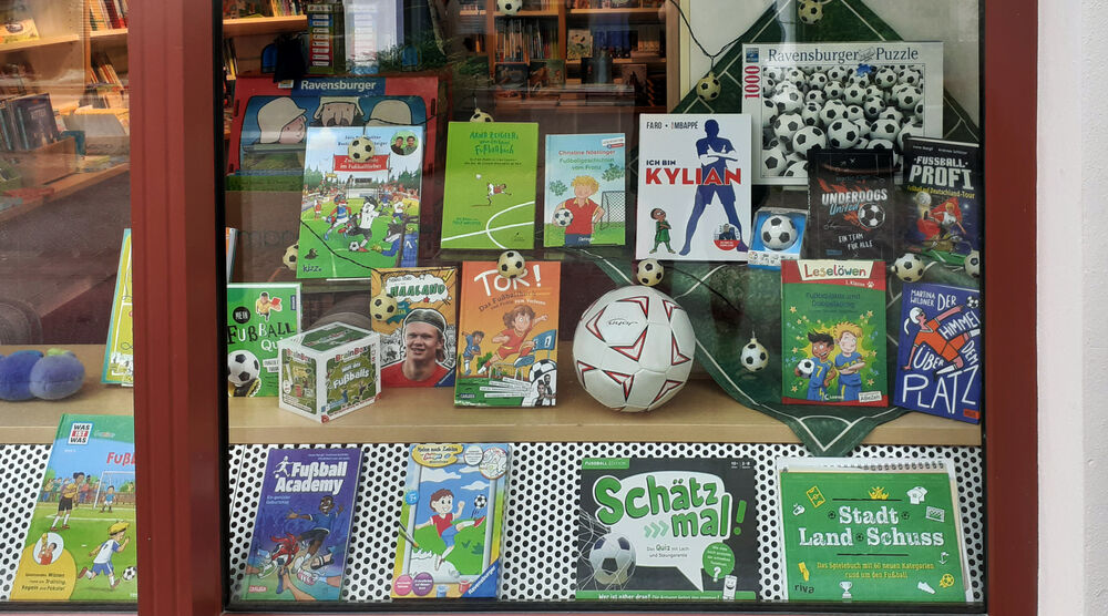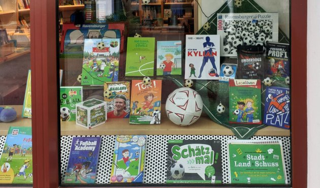 "Ich freue mich mit meinem Team hier in der Buchhandlung darüber, dass die EM stattfindet und dass sie bei uns in Bayern mit dem Eröffnungsspiel in München beginnt. Schön ist auch, dass der europäische Fußball dabei im Fokus steht“, so Kurt Idrizovic, Inhaber der Buchhandlung am Obstmarkt in Augsburg. Auch er hat selbst aktiv im Verein Fußball gespielt und war bei einer Altherren-Mannschaft aktiv. “Außerdem bin ich mit Fußballtrainer Thomas Tuchel befreundet, der lange auch in Augsburg gearbeitet hat und uns als Buchhandlung bei Projekten in Schulen unterstützt hat. Das planen wir auch jetzt wieder zur EM, und zwar mit Bundesligaspielern vom FC Augsburg, die noch in der Stadt sind. Da wird es mehrere Veranstaltungen in Schulbibliotheken geben. Ansonsten wird die EM im Laden und im Sortiment keine größere Rolle spielen.”