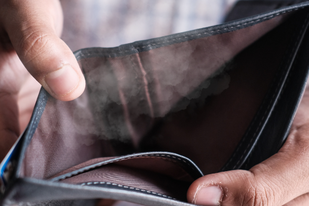 Zusammengekniffene Geldbörsen voraus