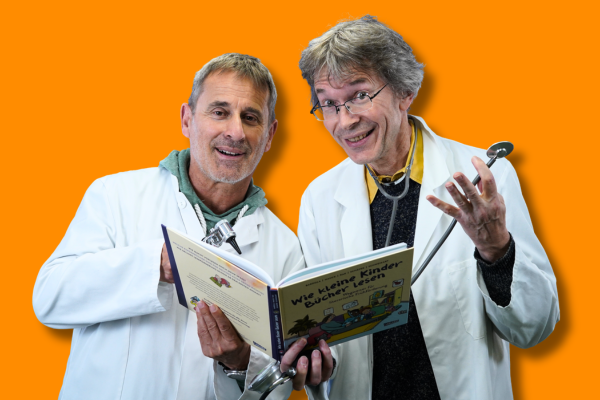 Dr. Stefan (rechts) und Mr. Ralf behandeln in der Kinderbuchpraxis erfolgreich alle Themen rund ums Kinder- und Jugendbuch
