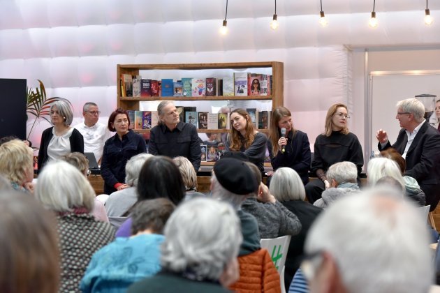 In der buchbar können Besucher:innen den Literaturstars nahe kommen, auch Fragen stellen. Die Nominierten zum Preis der Leipziger Buchmesse (Kategorie Belletristik) bei der Veranstaltung.