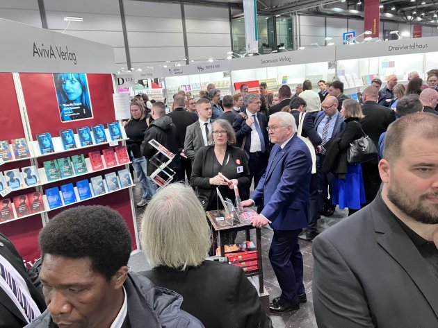 Der Bundespräsident Frank-Walter Steinmeier ging am Messedonnerstag vor seiner (wie die Eröffnungsfeier von Störern aufgemischte) „Leipziger Rede“ durch die Messehallen. Am Stand von Aviva (Kurt-Wolff-Preis) interessierte sich das Staatsoberhaupt für "Die Schlacht um den Hügel", einen Augenzeugenbericht der Schlacht um Fiesole (Florenz) im August 1944.