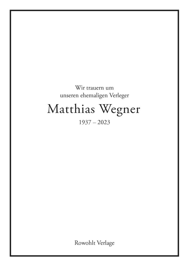 Matthias Wegner starb mit 86 Jahren am vergangenen Donnerstag im Kreise seiner Familie, die er so liebte und unterstützte und von der er so stolz erzählte. Er teilte sein Leben mit der ehemaligen Schauspielerin Christiane Wegner, geborene Biermann-Ratjen, in Hamburg. Sein Sohn, der Rechtsanwalt Konstantin Wegner, lebt mit Ulrike Wegner, Leiterin der Presse- und Lizenzabteilung des Verlags C.H.Beck, und deren Söhnen Benjamin und Sebastian in München. Seine Halbbrüder sind Markus E. Wegner (Hamburg) sowie der Verleger Christian Strasser, Leiter u.a. des Europa Verlags (München). Er wird von uns allen sehr vermisst.