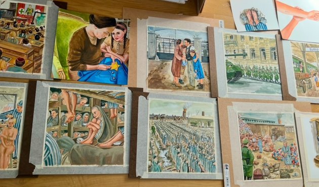Das Letzte, was er noch aus den Trümmern retten konnte, waren Stephanie Lunkewitz' Illustrationen zu dem gerade im Januar in Deutschland erschienenen Buch "Ich war Eva Diamant" (Ariella Verlag). Darin wird die bewegende Geschichte der Auschwitz-Überlebenden Eva Szepesi für Kinder nachvollziehbar geschildert. Eva Diamant war der Name des ungarisch-jüdischen Mädchens, das sich brutal von den Eltern trennen und allein unter unwürdigen Bedingungen leben musste und 1945 durch die Sowjetarmee befreit wurde. Petra Kammann wollte mehr darüber erfahren und hat mit Stephanie Lunkewitz gesprochen.