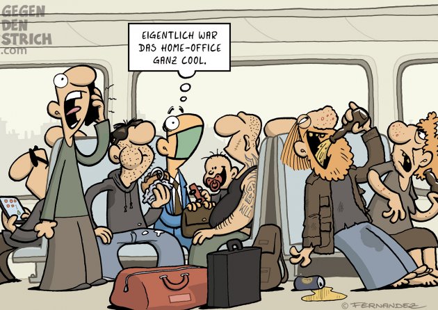 Der Weg zur Arbeit ist im Home-Office kurz. Woher kommen die Ideen für Ihre Pendler-Cartoons?
