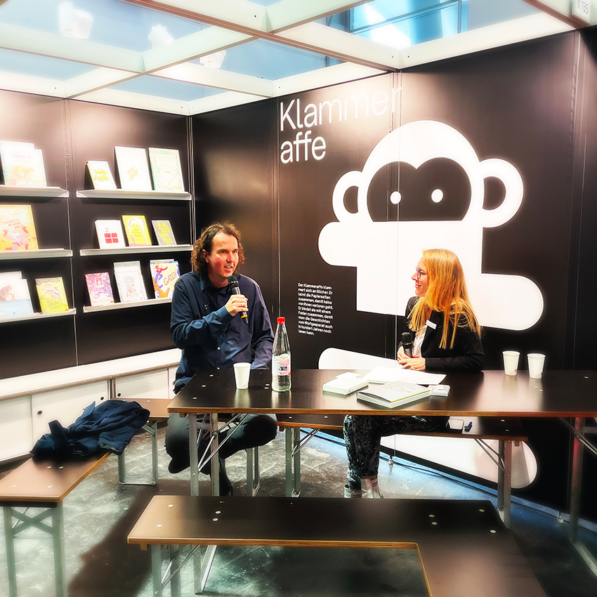 Endlich wieder Face-to-Face: Inmitten von lauter schönen und schönsten Büchern organisierte die Stiftung Buchkunst ein Gesprächs-Programm, das einen Einblick in die Auszeichnungslandschaft des Jahres 2022 ermöglichte. Mit dabei, unter anderen: Christine und Markus Färber, die Trauer und Fassungslosigkeit über den Suizid-Tod ihres Vaters in einem Comic verarbeiteten – aus dem im Pingpong mit Rotopol-Verlegerin Rita Fürstenau eine eindrückliche Graphic Novel wurde. Magdalene Krumbeck, Herstellerin bei Peter Hammer, und die Illustratoren Katrin Stangl und Henning Wagenbreth erläuterten, wie aus Bildern (schönste) Bücher werden. Prämierte des frisch gegründeten griechischen Buchgestaltungswettbewerbs für junge Talente trafen auf ihre deutschen Pendants. Die Bühnengestaltung der spannenden Talks geht auf eine Plakatreihe zurück, die das Hamburger Designbüro Zweifel für die Stiftung entwickelte: „Bücher-Gestalten“ eben, fabelhafte Verlagswesen wie die Blattraupe, das Buchstabiertier, der Lese-Esel oder der Klammeraffe, die überall dort zum Einsatz kommen sollen, wo es um Bücher und ums Lesen geht – in Buchhandlungen, Bibliotheken, Schulen oder, na klar, auf Messen.