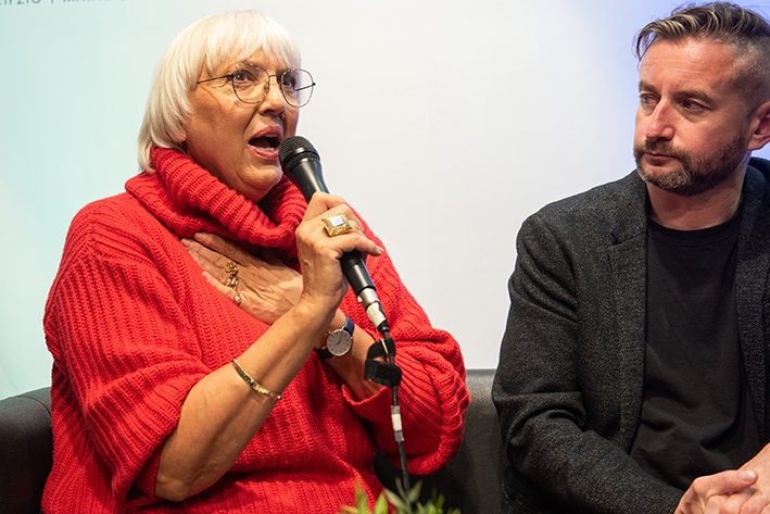 Wie sich Zhadan in der Ukraine engagiere, sei wichtig auch für die Literatur, sagte Schriftstellerin Eva Menasse, und Kulturstaatsministerin Claudia Roth berichtete von ihrem Besuch in Odessa: "Ukrainische Künstler haben mir dort gesagt: Gebt uns eine Stimme, denn Putin behauptet, es gebe die ukrainische Nation gar nicht." Wenn mehr als 500 Konzertsäle, Theater und Bibliotheken inzwischen angegriffen und zerstört worden seien, dann sei klar, dass die ukrainische Kultur ausgelöscht werden solle: "Dieser Krieg ist ein Krieg gegen die Kultur." Die Leiterin der großen Bibliothek in Odessa habe ihr unter Tränen gesagt: "Wie soll ich die fünf Millionen Bücher beschützen? Wenn sie zerstört sind, dann ist nichts mehr da, was auf uns hinweist."