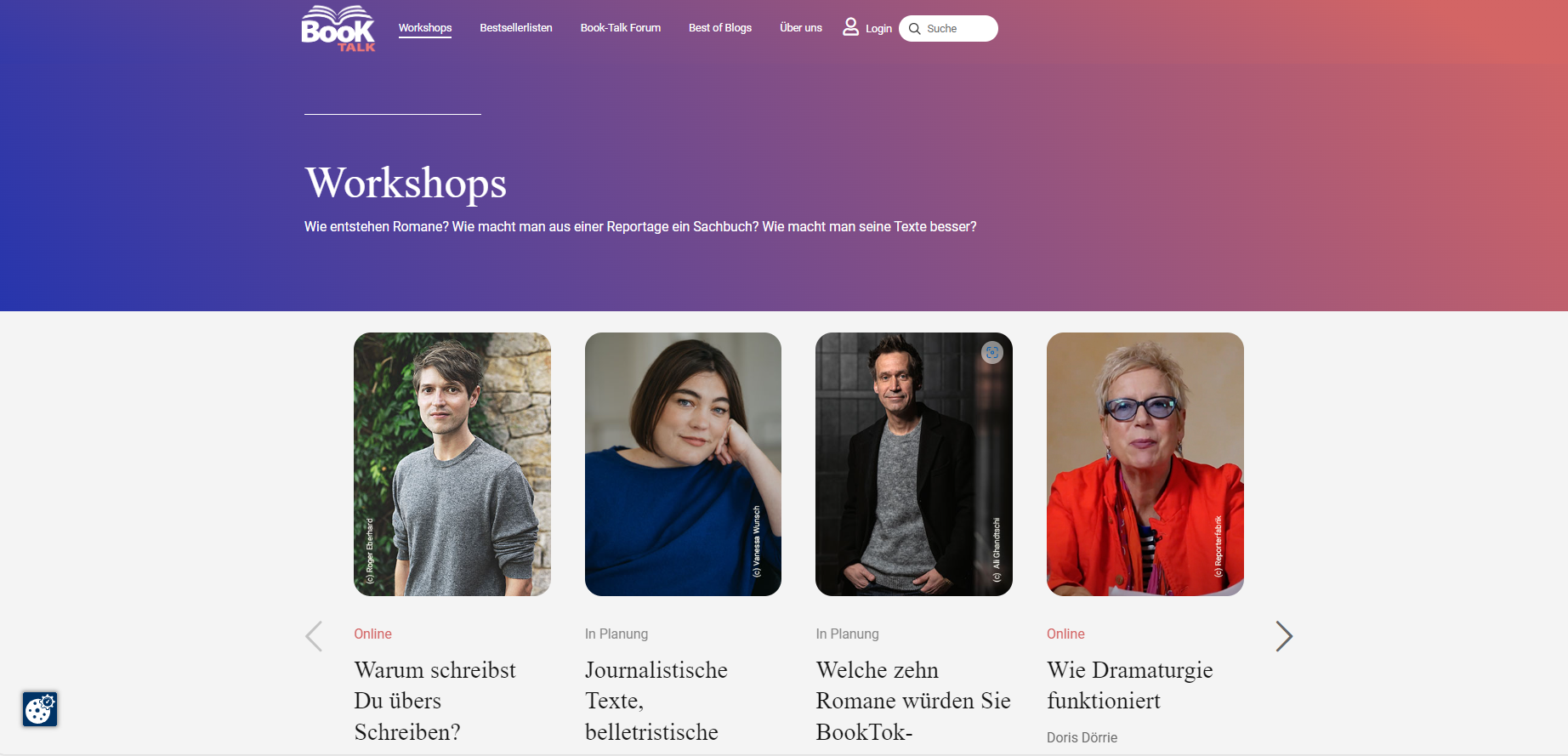 Neben den aktuellen Bestseller-Listen, Buchbesprechungen und Blog-Empfehlungen bietet die Plattform vor allem ein breites Workshop-Angebot mit Autor:innen wie Benedict Wells, Dorris Dörrie oder Caroline Wahl. Aber auch Literaturkritiker wie Volker Weidermann und Verleger wie Alexander Fest sprechen darüber, wie man junge Leser:innen erreicht oder welche Bücher sie BookTok-Leser:innen empfehlen würden.