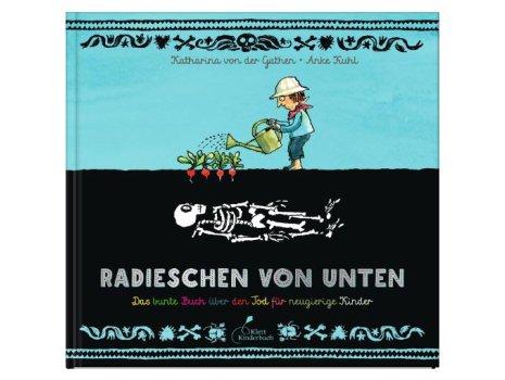 Begründung der Jury: Anke Kuhl lässt ein Skelett ein Baby umarmen: Gibt es ein eindrücklicheres Bild dafür, dass Leben und Tod zusammengehören? Was für Menschen vor 100 Jahren noch selbstverständlich war, haben später Generationen mehr und mehr mit Tabus belegt. Katharina van der Gathen und Anke Kuhl ermöglichen es Kindern mit diesem Buch, dass sie unverkrampft darüber reden können – denn die haben viele Fragen und sind neugierig: Haben Menschen Angst beim Sterben? Was passiert in einem Krematorium? Wie verabschiede ich mich von einem Toten? „Radieschen von unten“ gibt Einblicke in die Themenkreise Sterben, Beerdigen, Trauern und mit den Toten leben. Kinder werden ermutigt, zu blättern, zu stöbern; man liest das Buch nicht unbedingt in einem Rutsch. Denn es löst vielerlei Gesprächsanlässe aus und - ganz wichtig – es lässt Gefühle zu. Es gibt einfühlsame Antworten und Einblicke, Bestattungsarten, Interviews mit Experten und und und – sogar Witze gehören dazu. Illustratorin Anke Kuhl greift die Bezüge auf, erweitert sie, visuallisiert, so dass auch das Schwere leicht rüberkommt.
