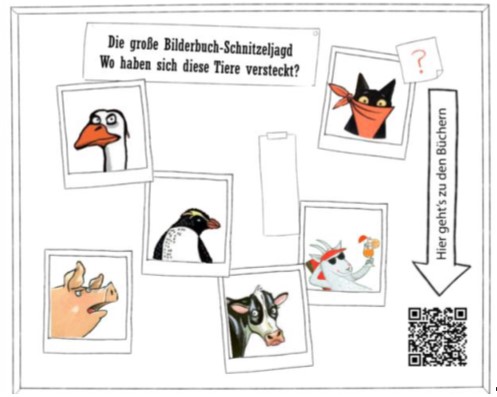 Konkret wird in der Buchhandlung ein „Fahndungsplakat“ mit sechs Tierbildern hängen, und die Tiere haben sich in sechs der 20 Bilderbücher versteckt. Die Kinder können nun entweder auf einem Büchertisch in realen Büchern suchen oder online: Dazu führt ein QR-Code auf eine Book2look-„Book Wall“ der Buchhandlung, wo 20 Bilderbuch-Titel zusammengestellt wurden. Jede Leseprobe ist mit dem Logo, dem Social-Media-Link und dem Webshop-Link der Buchhandlung versehen. Nun können die Kinder in den Leseproben der Book Wall nach den Tieren suchen. Als Lösung muss ein Sticker mit dem Tierbild auf das richtige Buchcover in einem Lösungsbogen geklebt werden, der dann in der Buchhandlung abgegeben wird. Unter den richtigen Lösungen kann jede Buchhandlung dann ein Paket mit drei der 20 Bilderbücher verlosen, das von Book2look und den beteiligten Verlagen bereitgestellt wird.