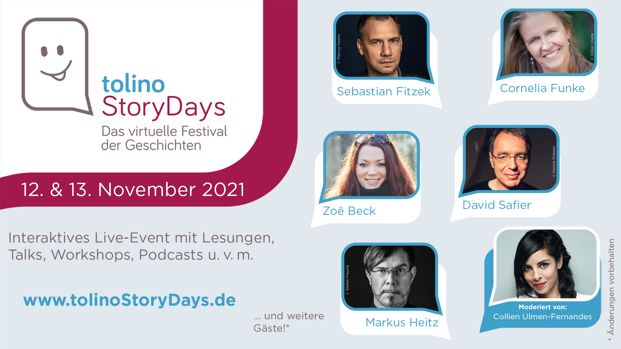 Tolino veranstaltet im November unter dem Motto „Zeit für Geschichten“ die ersten tolino storyDays. Auf dem virtuellen Festival können Teilnehmer*innen interaktive Lesungen, Workshops, Talk-Runden und Live-Podcasts erwarten.