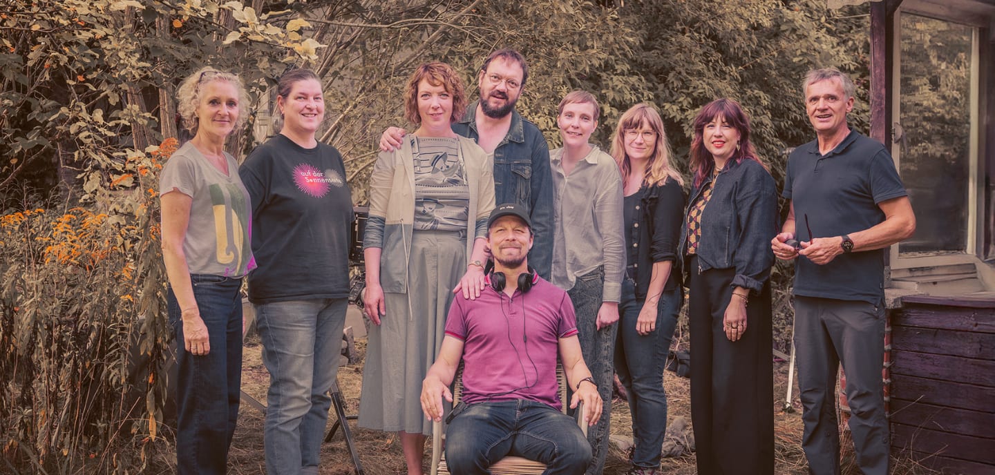 Auf dem Foto zu sehen sind (v.l.n.r.): Cecile Heisler-Zigulla (1st AD), Antje Naß (MV Filmcommission), Lina Beckmann (Hauptdarstellerin), Charly Hübner (Hauptdarsteller), Lars Jessen (Regie), Claudia Steffen (Pandora Film), Fee Buck (Pandora Film), Inga Behnsen (MV Presse & Kommunikation), Marco Voß (MV Filmförderung)