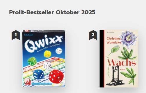 Das von Steffen Benndorf entwickelte Würfelspiel "Qwixx – Das Original" (Königsfurt-Urania; ET: 2013), ein Dauergast in der Prolit-Liste, klettert von Platz 6 im Vormonat auf diesmal wieder den ersten Platz (dort stand das Spiel etwa auch im Juli). Der beliebte Klassiker, 2013 als Spiel des Jahres nominiert, ist handlich verpackt und punktet mit einfachen Regeln, hohem Tempo und großem Spielspaß für alle Altersgruppe. Die zwei weiteren Spiele-Klassiker, die Königsfurt-Urania in der Top 10-Liste von Prolit im Oktober unterbringt sind: