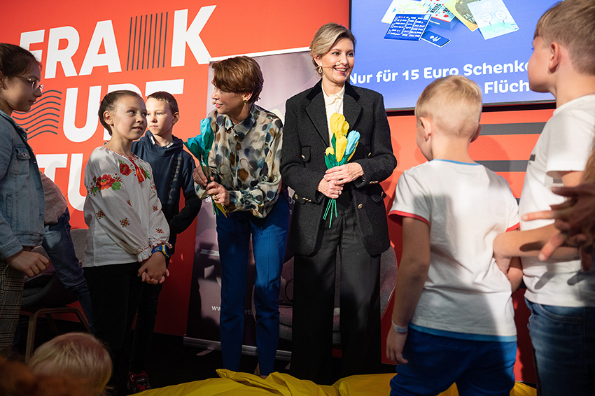 Drei First Ladies und eine Prinzessin haben die Schirmherrschaft über das Projekt "Better time stories - Licht in das Leben ukrainischer Flüchtlingskinder" übernommen: Auf der Frankfurter Buchmesse stellten die ukrainische Präsidentengattin Olena Selenska und Elke Büdenbender, Frau von Bundespräsident Frank-Walter Steinmeier, die Initiative im Saal Europa vor.
