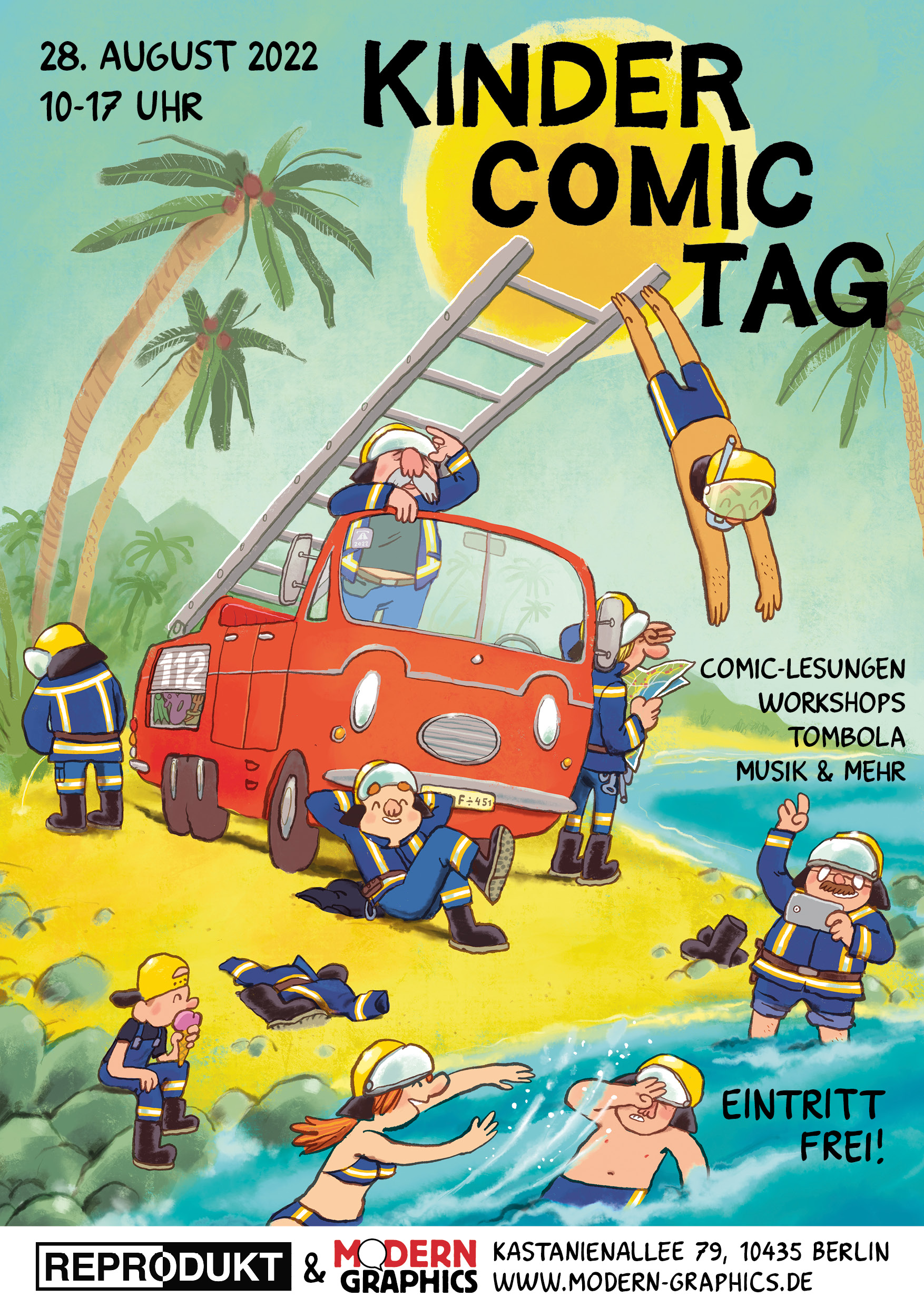 Der Verlag Reprodukt und der Comicshop Modern Graphics laden zusammen mit den Verlagen Carlsen, Egmont und Kibitz zum dritten Mal zum „Kindercomictag“ in Berlin am Sonntag, 28. August, ein. Das kostenlose Event im Comicshop „Modern Graphics“ bietet allerlei Lesungen, Workshops und andere Aktionen zum Mitmachen.