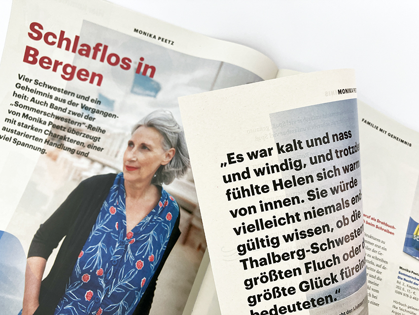 Ihre "Sommerschwestern" waren ein großer Erfolg. Mit dem zweiten Band "Die Nacht der Lichter" (Kiepenheuer & Witsch) möchte Monika Peetz nun daran anknüpfen. Im Mittelpunkt stehen vier Schwestern und der rätselhafte Unfalltod ihres Vaters. Die Autorin berichtet von der Spurensuche der Frauen, von den unterschiedlichen Erinnerungen jeder einzelnen, von Auseinandersetzungen und Versöhnungen, vom Aufeinanderprallen verschiedener Weltsichten und von der Notwendigkeit, einander immer wieder neu zu entdecken. Im Interview mit dem Buchjournal verrät Monika Peetz, warum sie sich in ihrem Schaffen dem alltäglichen Familienwahnsinn widmet und welche Rolle Geheimnisse in ihrem Leben spielen, heißt es in der Mitteilung von MVB.