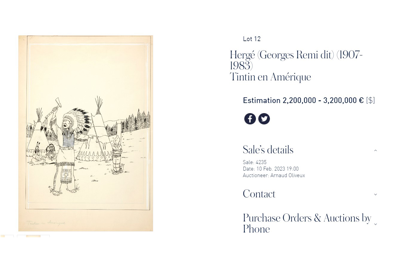 "Tintin" kennt man hierzulande als "Tim & Struppi": Für eine Originalzeichnung von Hergé in Schwarz-Weiß für das Cover von “Tintin en Amérique" sei in Paris "ein Weltrekord" erzielt worden, teilte das Auktionshaus Artcurial mit.