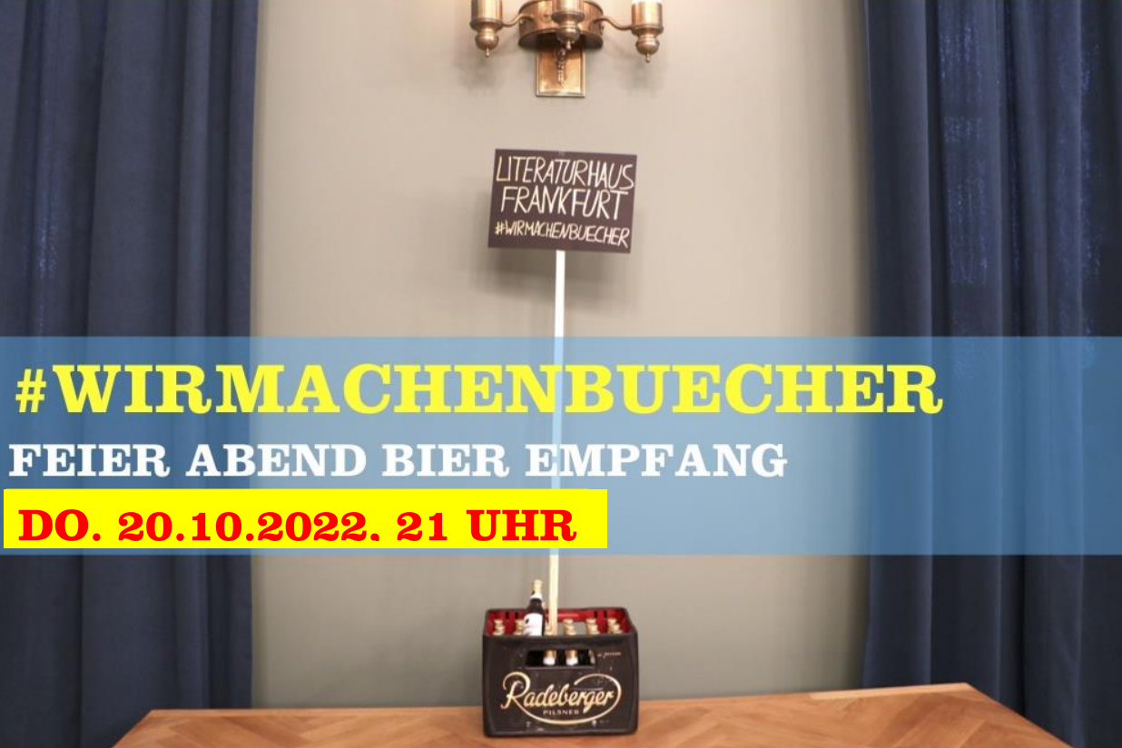 Wann ist es soweit mit dem "Feier Abend Bier Empfang"? Am Messe-Donnerstag, den 20. Oktober, von 21 bis 1 Uhr, kündigt das Literaturhaus Frankfurt an. Der Eintritt ist frei.