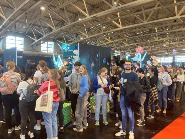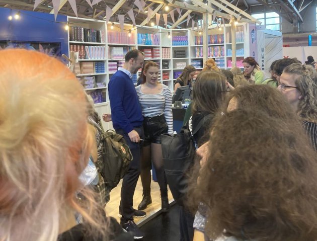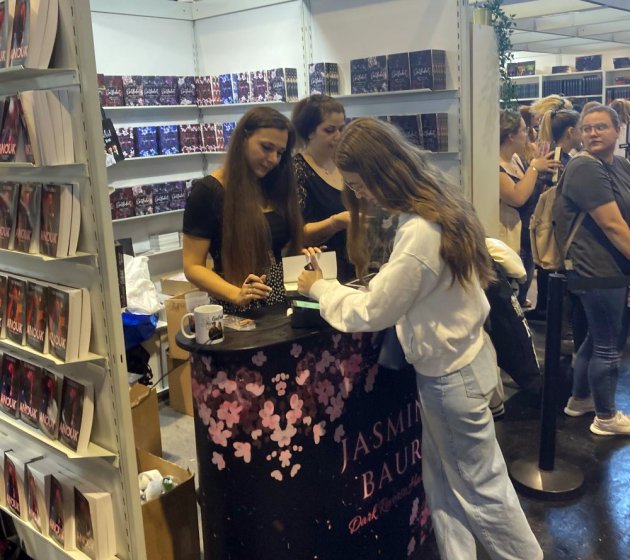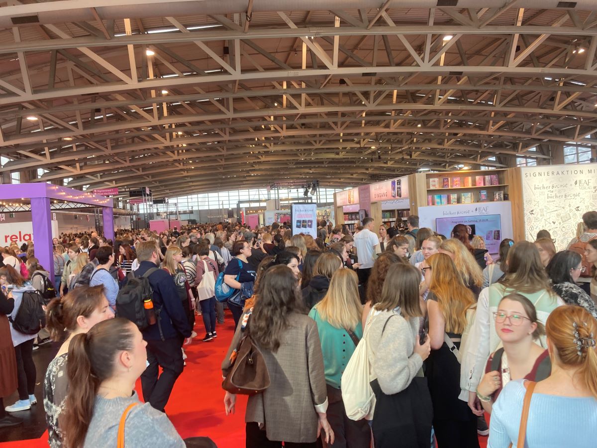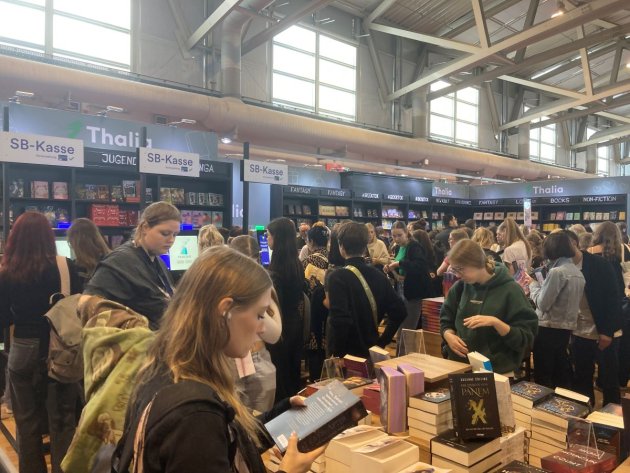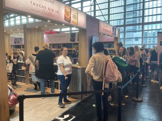 Vorwiegend zwischen 16 und Mitte 30 sind die Leserinnen, die sich an den Ständen umschauen und oft schon sehr genau wissen, welche Autorin sie treffen und welches Buch sie kaufen wollen – sie haben sich schon vorher digital für zwei oder drei der Warteschlangen registriert. Rund ein Viertel der Interessierten ist männlich und im selben Alter, aber keineswegs nur als geduldiger Partner mitgekommen: "Wir finden mit Tempo und viel Spannung geschriebene Romance auch gut", sagen etwa Josh und Robin. Und auch Ältere schieben sich durch die Gänge, meist Mütter, die gemeinsam mit ihren Töchtern da sind. Fehlanzeige übrigens, dass die Jüngeren nur die neue Halle 1.2 bevölkern, wie vor der Messe einige vermutet hatten: Sie ziehen anschließend weiter und stöbern genauso interessiert in den Hallen wie 3.1 oder machen es wie Lea: "Das Beste zum Schluss – ich will ja nicht nur Selfies mit meinen Lieblingsautorinnen machen, sondern auch eine Reihe Bücher kaufen und mir signieren lassen. Und die will ich ja nicht die ganze Zeit mit mir rumschleppen."