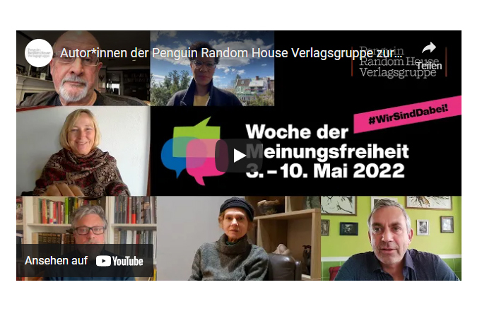 Zum Auftakt der Woche der Meinungsfreiheit und unter dem Eindruck der aktuellen Kriegsereignisse in der Ukraine finden Penguin-Random-House-Autor:innen wie Aslı Erdoğan, Wladimir Kaminer und Salman Rushdie in einem Video deutliche Worte.