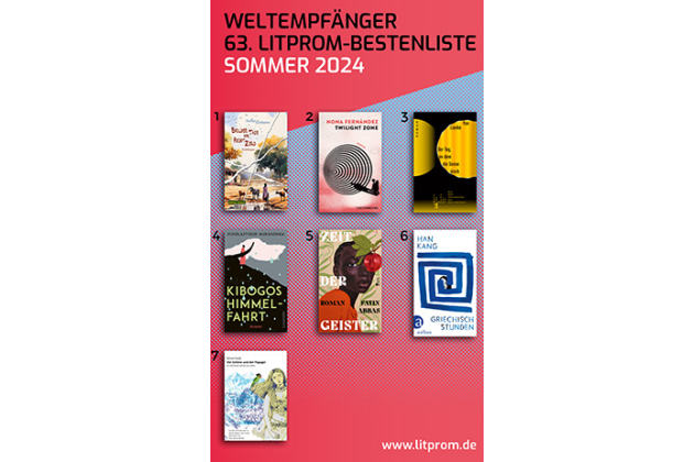 In einer Mitteilung stellt Litprom die Titel des aktuellen Weltempfängers vor. Stella Gaitanos Erzählungen in "Endlose Tage am Point Zero" (Ü.: Günther Orth) zeigen die dramatischen und grausamen Entwicklungen des Sudan auf und beschreiben die Zeit vor und nach der Abspaltung des Südsudan und die Auswirkungen auf die Bewohner*innen. "Twilight Zone" (Ü.: Friederike von Criegern) von Nona Fernández hat die reale Aussage eines Folterers des Pinochet-Regimes zur Grundlage und baut darauf einen literarischen Text auf. Der aus dem Chinesischen übersetzte Roman "Der Tag, an dem die Sonne starb" (Ü.: Marc Hermann) von Yan Lianke erzählt von einer brutalen Nacht in einem Dorf mitten in der Provinz Henan. Scholastique Mukasongas Roman "Kibogos Himmelfahrt", übersetzt von Jan Schönherr, macht deutlich, dass Missionare in Ruanda nie vollends die Denk- und Wertestrukturen der Bevölkerung verändern und verdrängen konnten. "Zeit der Geister" (Ü.: Bernhard Robben) von Fatin Abbas ist ein Roman über den Wunsch nach Freiheit und Wandel im Sudan. Die koreanische Autorin Han Kang reflektiert in "Griechischstunden" (Ü.: von Ki-Hyang Lee) über Sprache, Schrift und Stimme sowie über Verlust. Die aus dem Hindi übersetzte satirische Geschichte "Die Schöne und der Papagei" (Ü.: Almuth Degener, Ines Fornell, Max Kramer und Heinz Werner Wessler) von Mrinal Pande führt uns in die indische Gegenwart.
