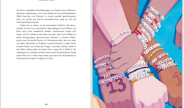 Für die jüngsten Swifties enthält die Insel-Reihe "Little People – Big Dreams" schon einen Band über die Künstlerin, die sich mit der Musikindustrie anlegt. "Die kleine Taylor, die an Märchen glaubte, macht die kühnsten Träume wahr" ist ein Kernsatz des Buchs, verbunden mit der Botschaft, dass es jeden stärker macht, wenn er seinem eigenen Urteil vertraut. Taylor ist die nahbare erfolgreiche Sängerin, deren wichtigstes Ziel es bleibt, ein freundlicher Mensch zu sein. Wendy Loggia stellt in "Großer Star – kleine Fans: Taylor Swift" (Edition Michael Fischer) Kindheit und Jugend der Sängerin in den Mittelpunkt, ein Mädchen, das ein klares Ziel im Leben hat und unbeirrt verfolgt, Tenor: "eine harte Arbeit, die sich ausgezahlt hat". Die Illustrationen durchströmen eine Dauerfröhlichkeit, viel Lachen, viel Jubeln, Taylor feiern.