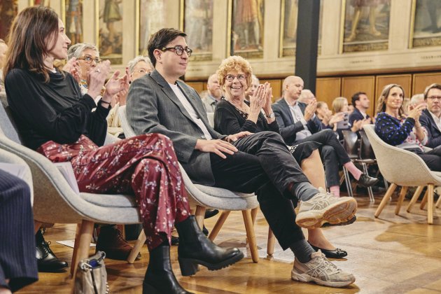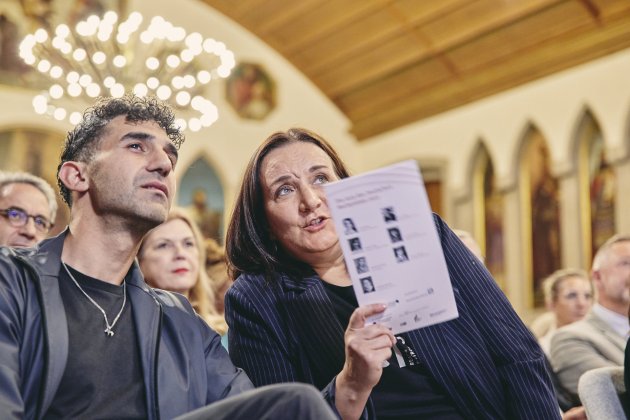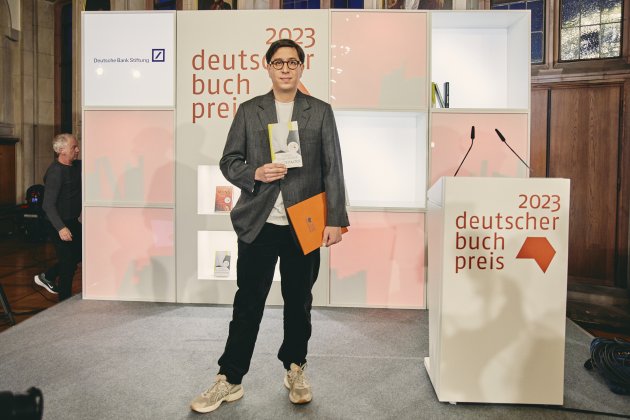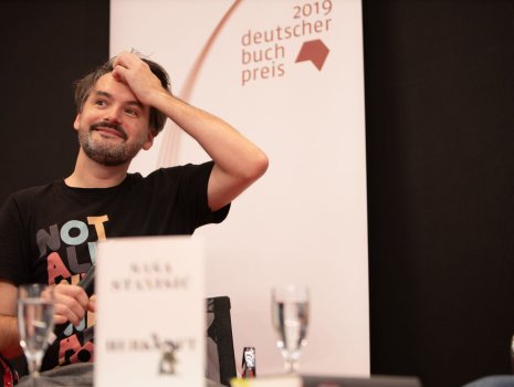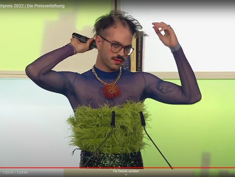 Unüberhörbare Freudenschreie bei der Rowohlt-Crew, bevor Tonio Schachinger nach vorn ging. Er bedankte sich bei seiner Frau Margit Mössmer, "von der ich alles gelernt hab, was ich weiß im Leben, und deren heuer erschienen Roman ich Ihnen auch ans Herz lege", bei seiner Lektorin Katja Sämann, seiner Agentin Karin Graf, dem Rowohlt Verlag. "Es ist unerträglich zu sehen, was passiert auf dieser Welt", fügte er an, "es ist schwer, dass immer nur die sprechen sollen, die davon direkt betroffen sind – und ich selbst habe nichts dazu beizutragen außer zu hoffen", sagte Schachinger. Während die anderen schon in den feier-Modus wechselten, wurde der Gewinner im Anschluss sofort von Journalisten umlagert und ium kurze Interviews gebeten – eine Situation, die ihn in den kommenden Tagen auf der Frankfurter Buchmesse weiter begleiten wird.