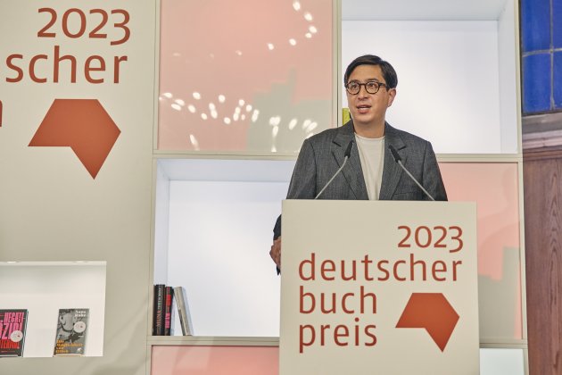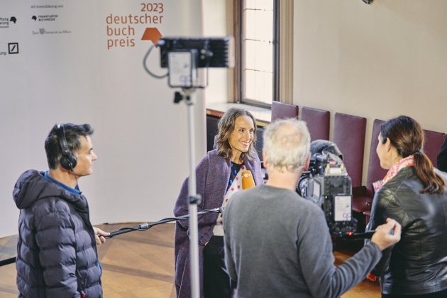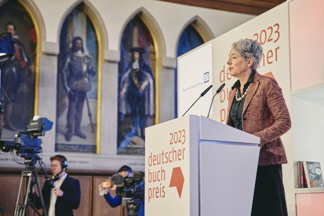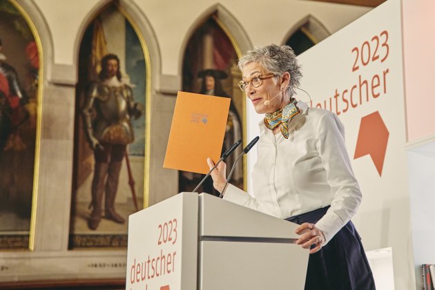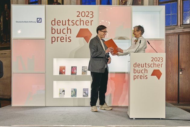 Aufgeregte Stimmung im Kaisersaal des Frankfurter Römers: Welcher Roman wird es werden? Katharina Teutsch, Jurymitglied und Literaturkritikerin für "FAZ", "Zeit" und Deutschlandfunk, ging im Gespräch auf die einzelnen Shortlist-Romane, Tendenzen und die Arbeit der Jury ein, dann wurden die Shortlist-Titel noch einmal vorgestellt. und dann, in die Stille hinein, verkündete Börsenvereinsvorsteherin Karin Schmidt-Friderichs: "Der Deutsche Buchpreis 2023 geht an "Echtzeitalter" von Tonio Schachinger!"