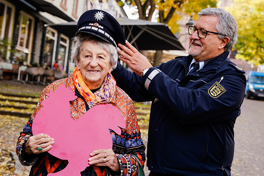 Am 10. November wurde der Weg feierlich eingeweiht – mit der Hauptperson Ingrid Noll und vielen Fachmännern: als Lokalpatriot kam Weinheims Oberbürgermeister, der Chef des baden-württembergischen Landeskriminalamts und Mannheims Polizeipräsident vertraten die kriminalistische Expertise. Die Mannheimer Polizei hat die 86-Jährige Krimi-Meisterin schon vor einiger Zeit zur «Ehrenhauptkommissarin» ernannt.