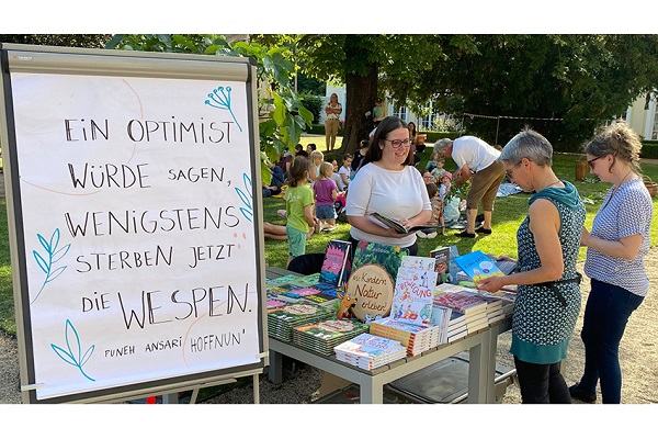 Am Dienstag katte die Klimabuchmesse ins Gohliser Schlösschen geladen. Dort regte sie Kindern an, sich mit dem Thema auseinanderzusetzen und mit Illustratorin Lena Steffinger, Autor Roland Bock und der Eichhörner AG des Freundeskreis Buchkinder auszutauschen. Besonders spannend fanden die Autor:innen den Austausch mit Schulkindern bei den drei Lesungen am Dienstag und Mittwoch im Halle 5 Kinder- und Jugendzentrum, die auch digital übertragen wurden