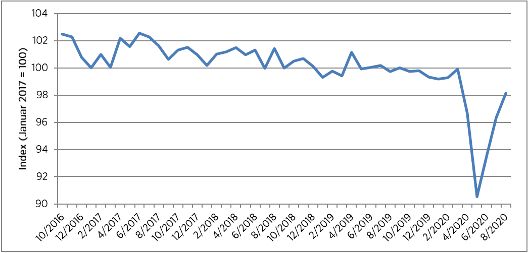 Allerdings liegt die Verbraucherstimmung mit dem Wert von 98,14 (Richtwert 100) im August 2020 noch deutlich unter dem Wert des Vorjahresmonats, wie der Handelsverband Deutschland mitteilt. Er geht davon aus, dass die Rückkehr der Wirtschaft und des Konsums auf das Vor-Krisen-Niveau mehr Zeit in Anpruch nehmen wird als erwartet.