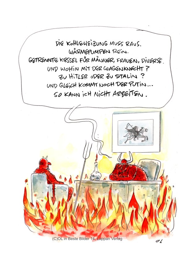 Der gemeinsam von der Frankfurter Buchmesse und dem Lappan Verlag vergebene und mit 3.000 dotierte Deutsche Cartoonpreis 2023 geht an den Cartoonisten OL. Hauck & Bauer belegen den zweiten Platz, auf dem dritten Platz folgt Ruth Hebler. Erstplatzierter OL erhält zudem den mit Unterstützung der Stadt Kassel ausgelobten Publikumspreis der Ausstellung "Beste Bilder – Die Cartoons des Jahres 2023".