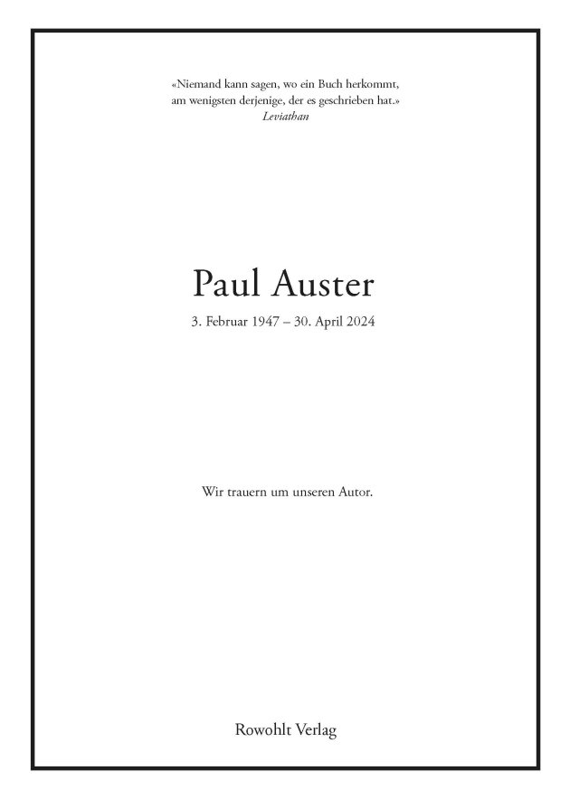 Austers literarischer Durchbruch erfolgte Mitte der achtziger Jahre mit den in rascher Folge publizierten Romanen "Die New York-Trilogie" und "Im Land der letzten Dinge". Auster habe in seinen Romanen grundlegenden Sinnfragen nachgespürt, "mit einer unverwechselbaren erzählerischen Meisterschaft, die als 'Auster-Sound' ein stehender Begriff wurde", heißt es in der Mitteilung des Rowohlt Verlags. Seit 1989 erschienen seine Werke dort in deutscher Übersetzung, "eine lang andauernde und tiefe Verbindung, die uns den Verlust umso schmerzlicher spüren lässt", so der Verlag.