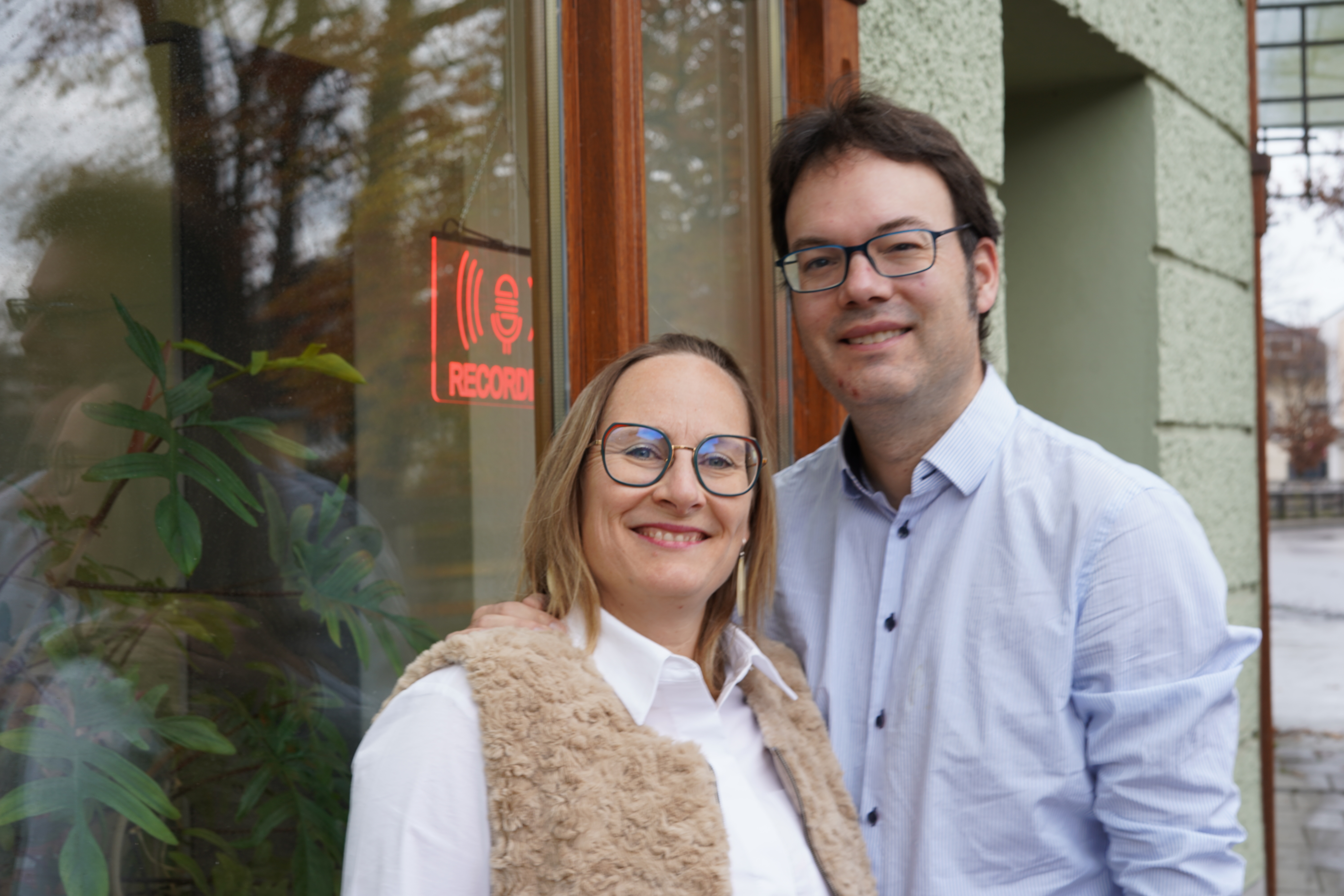 Isabella Kortz und Peter Kortz-Frankemölle sind selbstständig in der Buchbranche. Sie arbeitet als Buchcoach, er als Voice Actor – für die Familie bleibt trotzdem Zeit.
