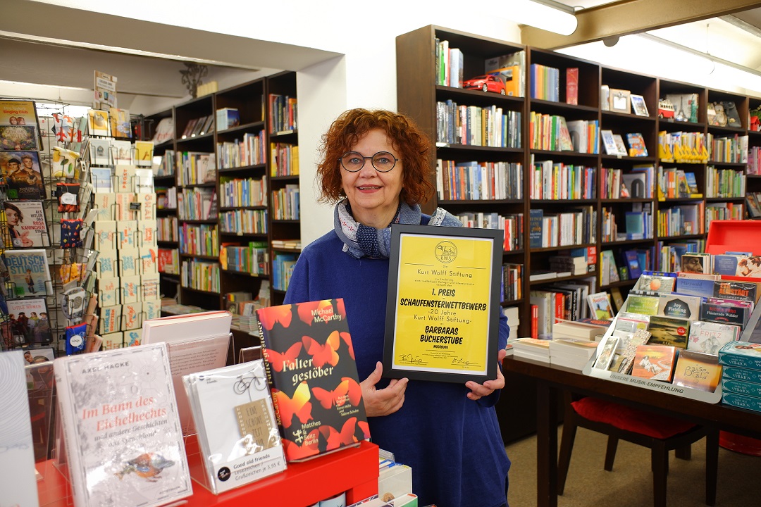 Für den Schaufensterwettbewerb stellte die Kurt Wolff Stiftung dem stationären Buchhandel ein limitiertes Jubiläumspaket, bestehend aus Plakaten, Postkarten, Stoffbeuteln und dem Katalog "Es geht um das Buch" zur Verfügungworden. "Die Pakete trafen auf großes Interesse und waren frühzeitig vergriffen", teilt die Stiftung aktuell mit. Der Wettbewerb lief ab Oktober bis Jahresende. Neben zahlreichen individuellen Postings in den sozialen Medien hätten sich nahezu 40 Buchhandlungen daran beteiligt.