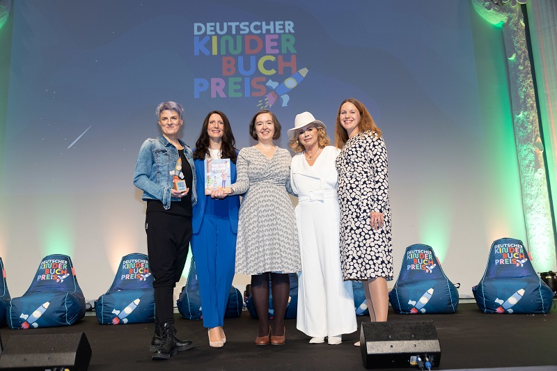 Voll Freude und zunächst auch etwas sprachlos nahmen die Autorin und die Illustratorin des im Februar 2022 erschienenen Siegertitels "Grimm und Möhrchen – Ein Zesel zieht ein" (dtv) den Preis entgegen. Im Mittelpunkt des Buchs steht Buchhändler Grimm mit seinem "Bücherkiste"-Laden, wo es bisweilen etwas einsam ist. Das ändert sich, als an einem Regentag plötzlich ein kleiner Zesel namens Möhrchen in seinem Laden steht – und kurzerhand bei Grimm einzieht. Der sympathische Zesel bringt ordentlich Schwung in Haus und Leben von Grimm, weil auch ganz Alltägliches wie Radfahren oder Puddingkochen zum Abenteuer wird. Zudem zeigt Möhrchen eine große Vorliebe für ungewöhnliche Dinge und Wörter, die immer wieder für Überraschungen sorgen. Im Juli 2022 erschien der Folgeband "Grimm und Möhrchen – Frühling, Sommer, Herbst und Zesel".