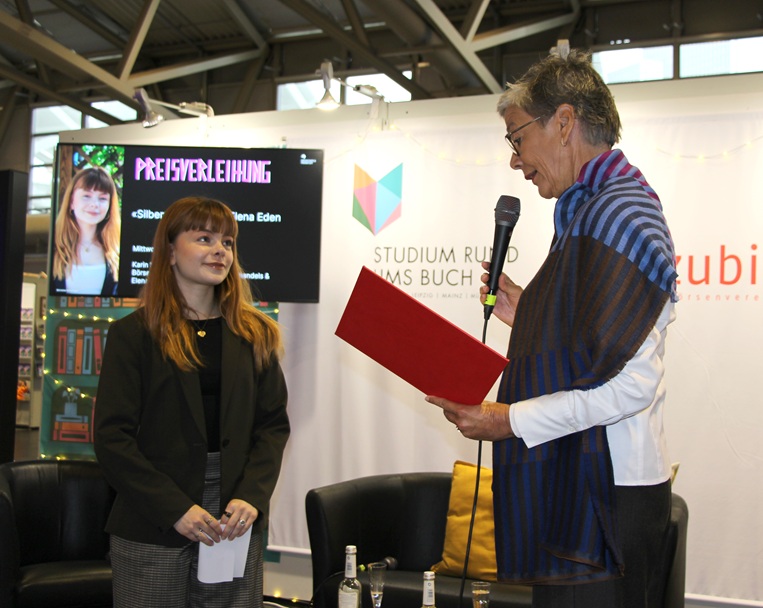 "Weil junge Stimmen für die Zukunft des Vereins so wichtig sind, haben wir im Ehrungsausschuss beschlossen, unseren Fokus nicht nur auf diejenigen ehrenamtlich Engagierten zu richten, die die Verbandsarbeit über Jahre tragen, sondern auch junge Talente auszuzeichnen. Elena Eden zeigt, was Ehrenamt im Börsenverein bedeuten kann: Sie verbindet persönliche Leidenschaft mit Neugier und fachlicher, inhaltlicher Kompetenz. Sie bringt Ideen ein, die die Branche wirklich weiterbringen", sagte Karin Schmidt-Friderichs, Vorsteherin des Börsenvereins, bei der Preisverleihung am 15. Oktober auf der Frankfurter Buchmesse.