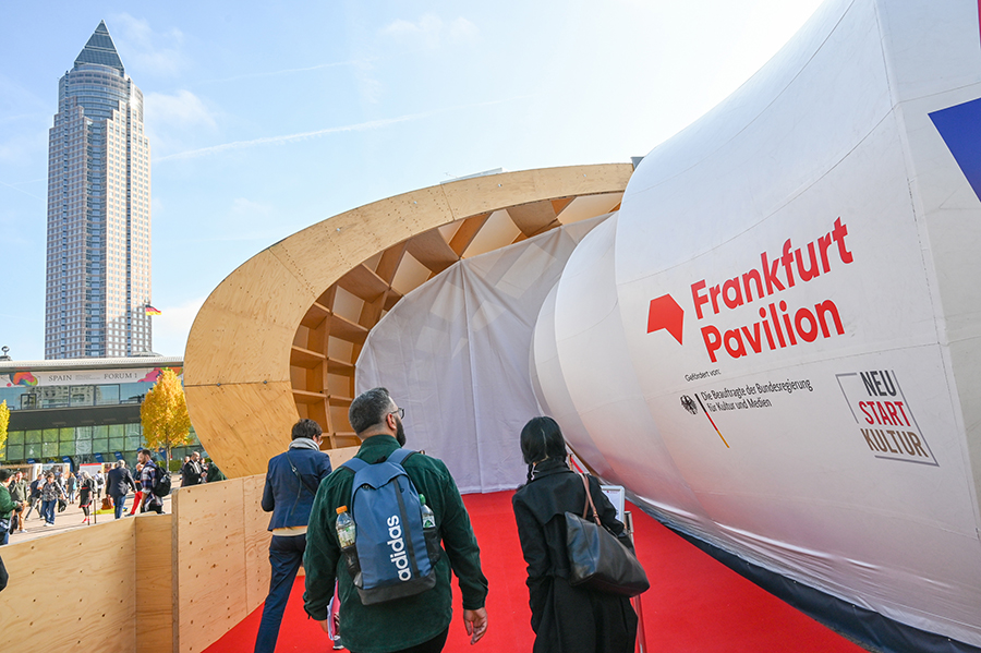 Mit seinen 500 Quadratmeter Grundfläche, 6,5 Meter Höhe und einer selbsttragenden Holzkonstruktion mit lichtdurchlässiger Membran sei Frankfurt Pavilion zum Wahrzeichen der Messe geworden.
