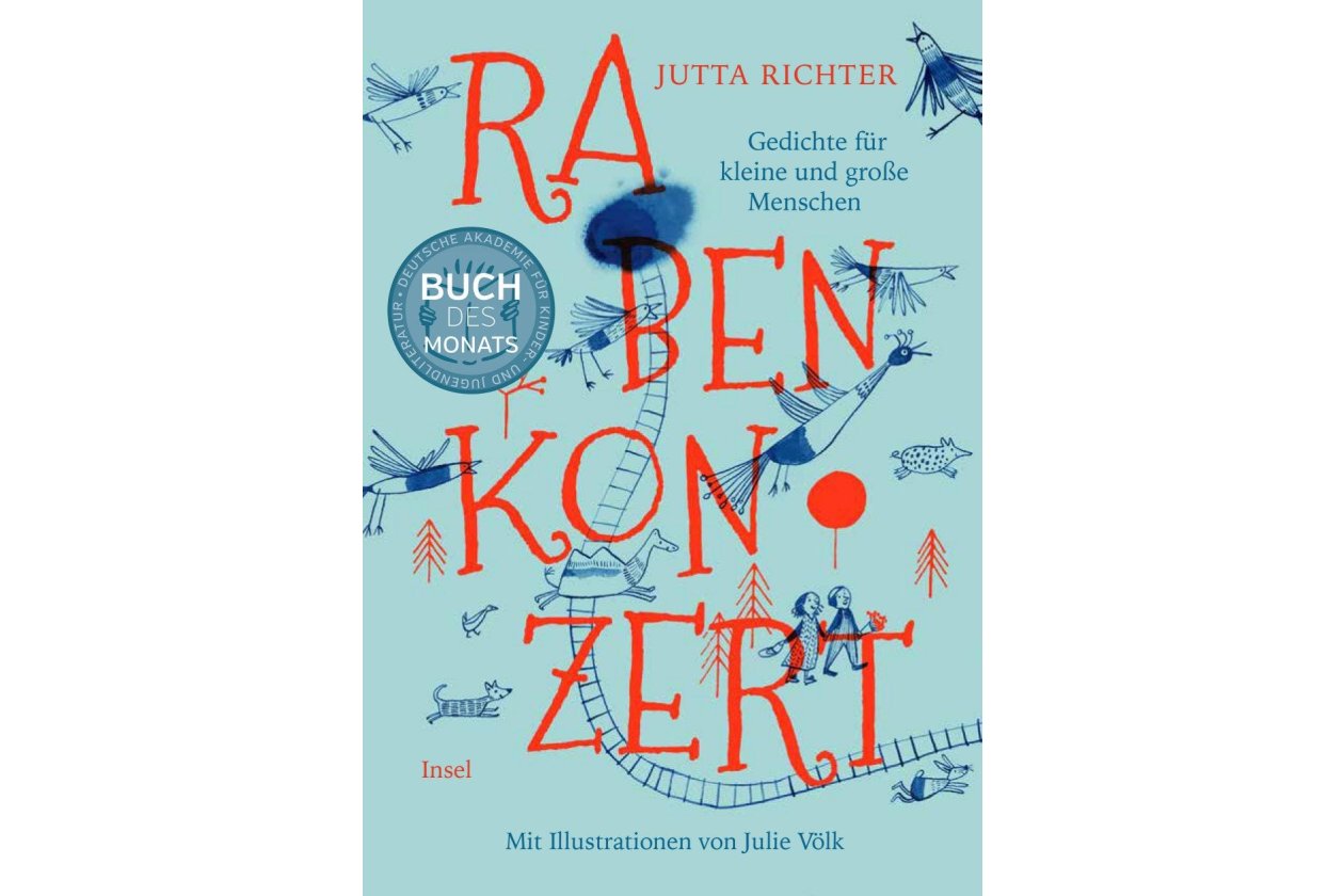 Als Preisträgerin hat die Jury die Schriftstellerin Jutta Richter für ihren Gedichtband "Rabenkonzert. Gedichte für kleine und große Menschen" (Insel; mit Illustrationen von Julie Völk) gekürt. "In diesen 73 dahinsprühenden Gedichten hat sich ein kinderlyrisches Lebenswerk angesammelt", schreibt die Jury zum Siegertitel. "Zutiefst menschlich, tierlieb, lebensgetränkt." Richters Verse gingen auch mal dahin, wo es weh tut: gestorbene Hunde, die verschwundenen Schwalben, Kriegserfahrungen, das Tränental des Vermissens. Auch die Wut bleibe nicht aus: "Heute bin ich wild und böse./ Bin ein Wolf im grauen Fell/ bin ein Drache, bin ein Löwe/ und ich beiße und ich bell". Diese Gedichte sind keine lyrischen Schnellschüsse, so die Jury, "sie sind gut durchgearbeitet und legen nicht selten eine vielstrophige Ausdauer an den Tag. Kein Wort ist zu viel." Die blauen, strichbasierten Zeichnungen von Julie Völk würden eine ganz eigene Geschichte erzählen. "Sie sind als feines Schienenwerk angelegt, das die Doppelseiten unaufdringlich umspielt. Eine starke Idee! So wird die große (Lebens-)Reise evoziert, auf die wir uns mit Jutta Richters Gedichten begeben", so die Jury. "Wir spüren, dass ein großes Herz in diesen Gedichten pocht."