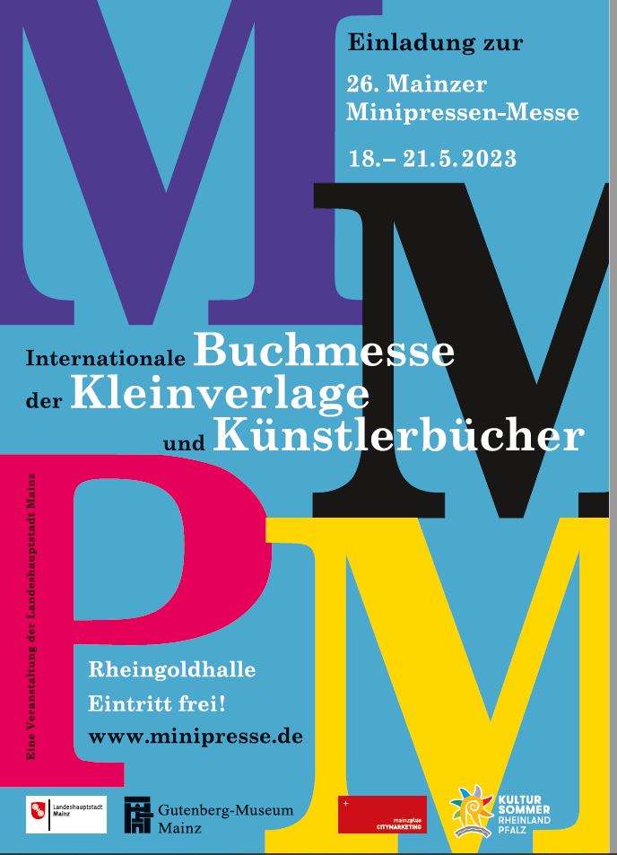 Die Preisverleihung findet am 18 Mai zum Auftakt der 26. Mainzer Minipressen-Messe (18.–21. Mai) statt. Am langen Himmelfahrts-Wochenende laden das Gutenberg-Museum und das Mainzer Minipressen-Archiv zu einem umfangreichen Rahmenprogramm aus Lesungen, Workshops, Seminaren, einer Literaturbörse und natürlich dem live Drucken ganz im Stile von Johannes Gutenberg ein. Die Rheingoldhalle in der Gutenbergstadt Mainz öffnet wieder die Pforten für die Internationale Buchmesse der Kleinverlage und Künstlerbücher, bei der über 200 Kleinverlage und Buchkünstler:innen aus über zehn Ländern ihre Werke präsentieren. Die Messe wird am 18. Mai um 14 Uhr von Kulturdezernentin Marianne Grosse eröffnet.