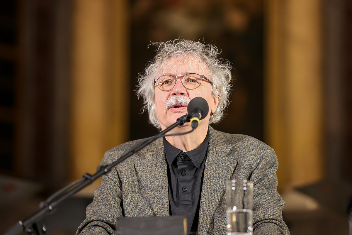 Während der Posaunenchor, der eben noch ein schütteres „Dona nobis pacem“ der Menge auf dem Nikolaikirchhof begleitet hat, seine Instrumente verstaut, zeigt die große Videoleinwand vor dem Gemeindehaus einen bärtigen Mann, der spürbar um Fassung ringt und das verschmitzt-ironisches Lächeln, das man eigentlich von ihm kennt. Juri Andruchowytsch, der berühmteste Schriftsteller der Ukraine, hat am 21. Tag von Putins Angriffskrieg in seiner Heimatstadt Iwano-Frankiwsk eine Videobotschaft für uns aufgenommen. Eingespielt wird sie auf einer gemeinsam von der Stadt Leipzig, der Leipziger Messe, dem Börsenverein und der Evangelisch-Lutherischen Kirchgemeinde St. Nikolai organisierten Friedensaktion, kurz vor der Verleihung des Leipziger Verständigungs-Buchpreises, den Andruchowytsch selbst 2006 erhalten hat. Damals hatte der Autor gleich um die Ecke, im Gewandhaus, eine Rede gehalten, die vor allem im deutschsprachigen Teil Europas ein immenses Echo auslöste. Andruchowytschs Bitte an die europäischen Funktionsträger: „Keine Botschaften zu senden, die die Hoffnung töten“. Seitdem hat sich die EU für die Ukraine und andere „Nachfolgerepubliken“ der UdSSR viel schlauen Ersatz ausgedacht; Nachbarschaft, Partnerschaft, Assoziierungsabkommen.