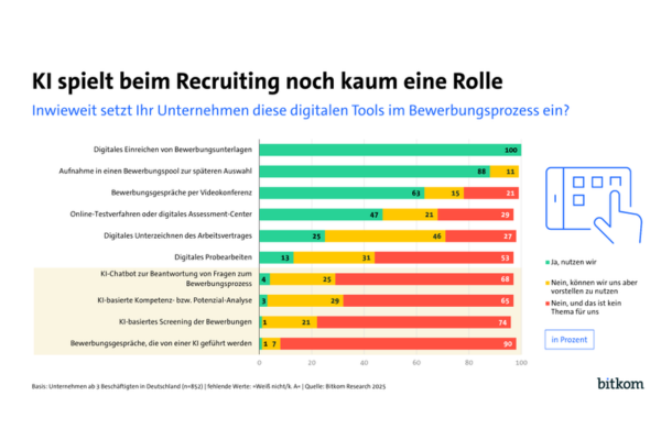 - rund die Hälfte (47 Prozent) führt Online-Tests oder digitale Assessment-Center durch
