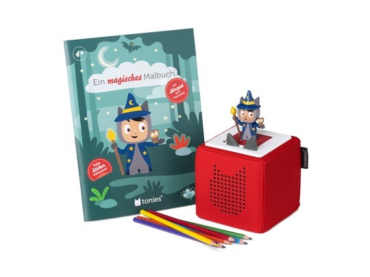 Ab März 2023 bietet Tonies ein neues Hör- und Spielerlebnis: "Ein magisches Malbuch", ein Ausmalbuch mit dazu passendem Hörbuch zum Download auf einen Kreativ-Tonie.