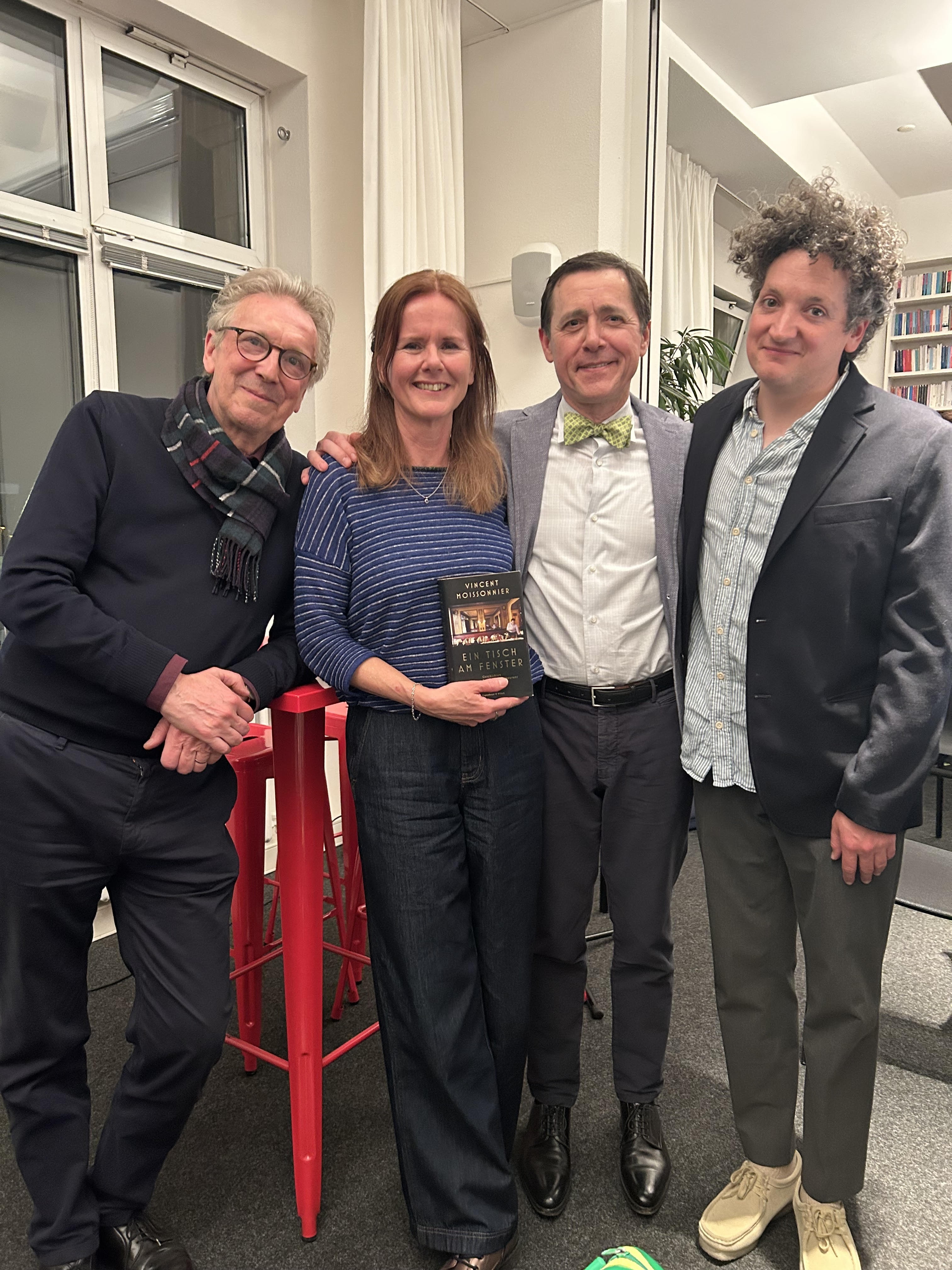 Am 14. April war bei "Kiwi-am-Dom" der Sternegastronom Vincent Moissonnier anlässlich seines neuen Buches "Ein Tisch am Fenster. Geschichten aus einem besonderen Restaurant" zu Gast (ET: 13. März). Mit 70 anwesenden Buchhändlerinnen und Buchhändlern war die Veranstaltung ausverkauft. Und Moissonnier hatte die Idee, die Buchvorstellung mit einer Weinverkostung zu verbinden. "Er brachte drei exquisite Weine mit: einen Weißwein (Muscadet Sèvre et Maine 2023), einen Rosé (Rosé Roséphine 2024) und einen Rotwein (Piccolo 2016), die dann jeweils vor bzw. nach dem Gespräch, das er mit dem Editor at Large, Helge Malchow führte, erklärte und die gemeinsam verkostet wurden. Es war ein äußerst gelungener Abend!", so Vertriebsleiterin Sabine Glitza.