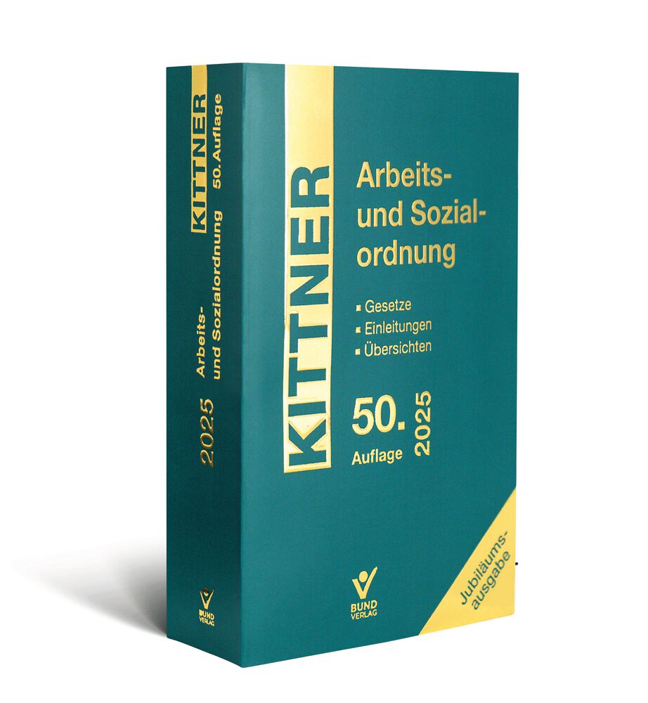 1.842 Seiten stark und in der Praxis oft mit bunten Klebezetteln gespickt: Der »Kittner« ist für die Arbeit von Betriebs- und Personalräten unverzichtbar. Die »Arbeits- und Sozialordnung« aus dem Bund-Verlag erscheint aktuell in der 50. Auflage neu bearbeitet und aktualisiert. Dass der Titel nach wie vor als Standardwerk fungiert, liegt an der Kombination aus Gesetzestexten und ihrer Einordnung für die Praxis. Über 80 Checklisten, Übersichten und Grafiken sowie Erläuterungen machen die oft komplexen Gesetzestexte anschaulich, vor allem aber für Nichtjuristen anwendbar. »Die Arbeits- und Sozialordnung ist ein Grundarbeitsmittel mit Alleinstellungsmerkmal, bei Schulungen ist sie Standard. Ihre Sprache ist klar und gut verständlich, der Inhalt anwendungsbezogen«, erklärt Pressesprecher Christof Herrmann den anhaltenden Erfolg. Digitales Plus: Zusätzlich zur Printausgabe stehen alle Inhalte in der regelmäßig aktualisierten Online-Ausgabe mein-kittner.de zur Verfügung. Sie ermöglicht den Zugriff auf alle Inhalte der gedruckten Ausgabe plus alle Gesetze und höchstrichterliche Rechtsprechung im Volltext. Seit der Erstauflage 1976 zählt der »Kittner« zum festen Inventar von Betriebsratsbüros in Deutschland. Passend zum goldenen Jubiläum erscheint das Buch mit einem goldenen Umschlag.