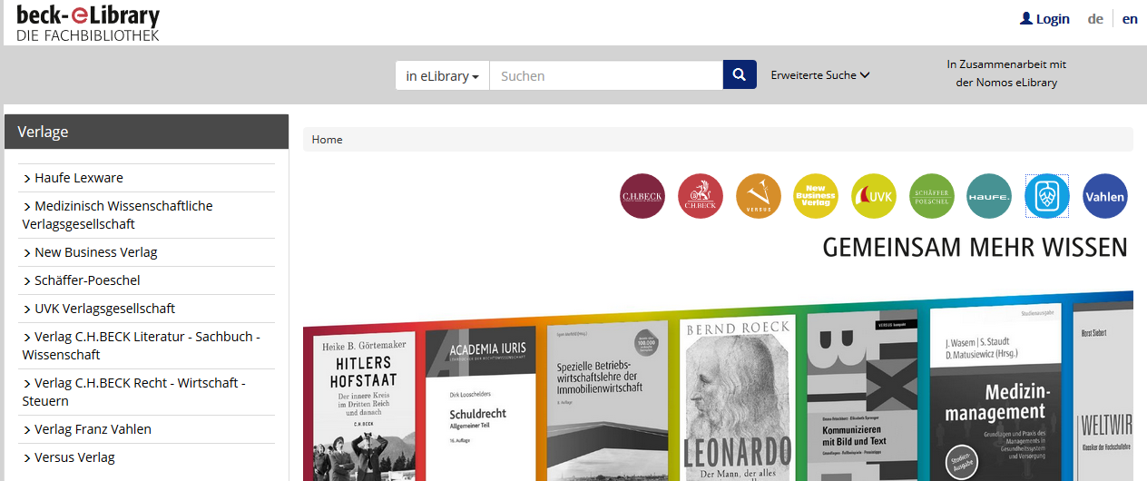 Der Deutsche Ärzteverlag stellt seine Fort- und Weiterbildungstitel jetzt auch über die beck-eLibrary zur Verfügung. Dies teilten die Verlage heute mit.
